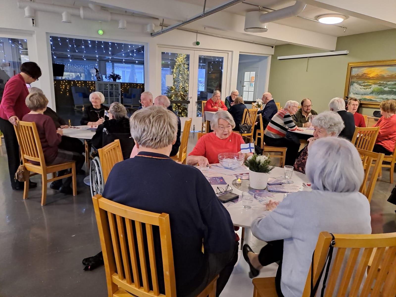 Vietimme 8.12 2025 joulujuhlaa Vuollekodissa. Läsnä oli enneätysmäärä senioreita. Syötiin riisipuuroa ja luumukiisseliä ja juotiin torttukahvit. Ohjelmassa oli yhteislaulau Vuollekodin asukkaiden ja henkilökunnan kanssa. Satakunnan piiriin seniorilähettiläs Liisa Luomanen kertoi liiton kuulumisia ja yhdistyksemme jäsen Mikael Juudin esitteli uusimman kirjansa "Sammakkosinfonia". Lapsiryhmä Villa Vilinästä sai raikuvat aplodit kolmesta laululeikkiesityksestään.